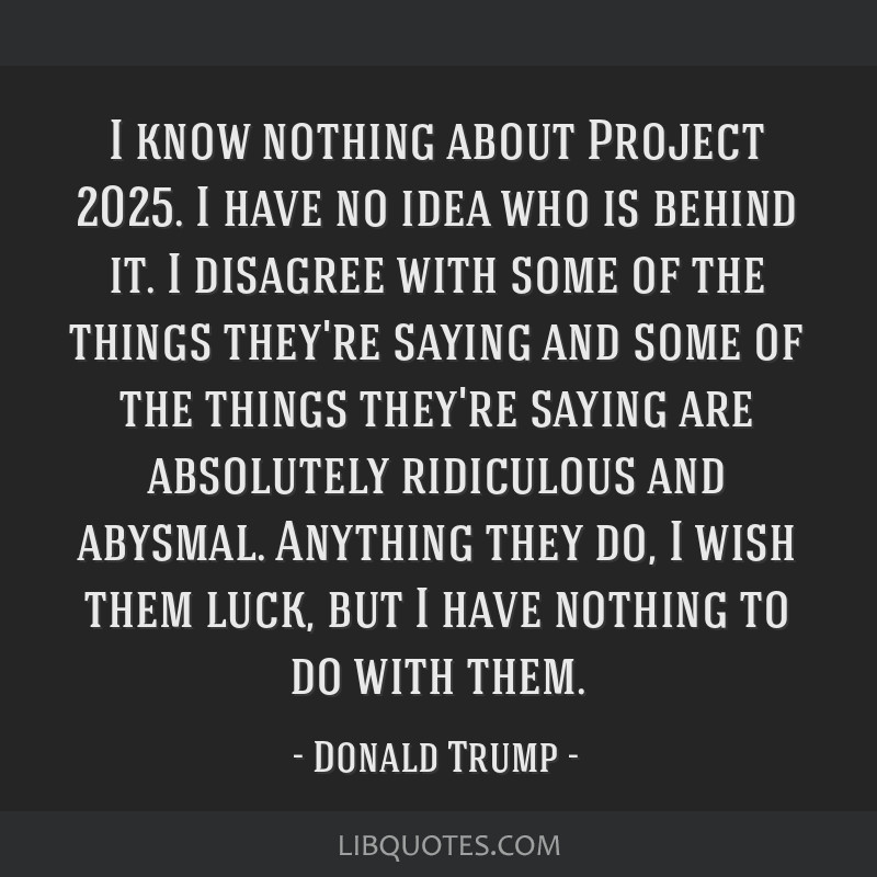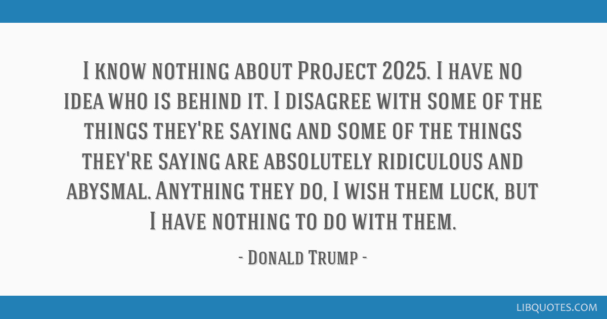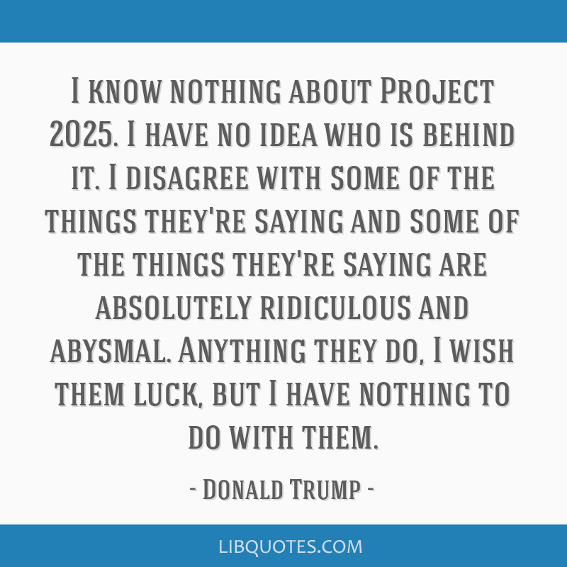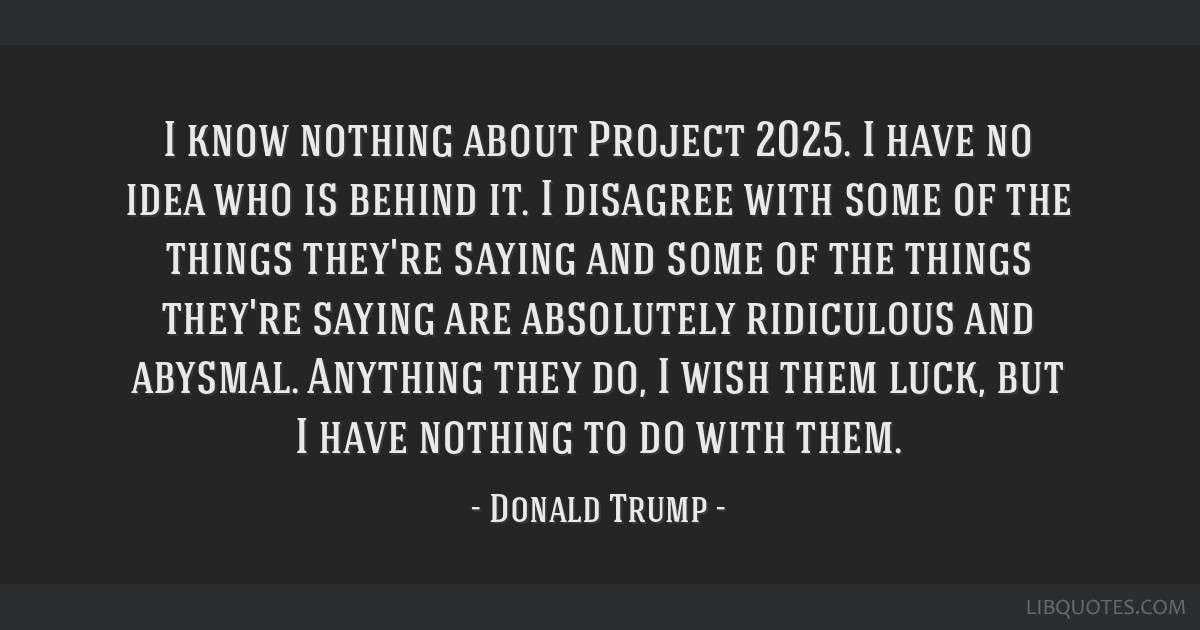 I know nothing about Project 2025. I have no idea who is behind it. I disagree with some of the things they're saying and some of the things they're saying are absolutely ridiculous and abysmal. Anything they do, I wish them luck, but I have nothing to do with them.