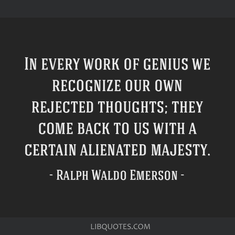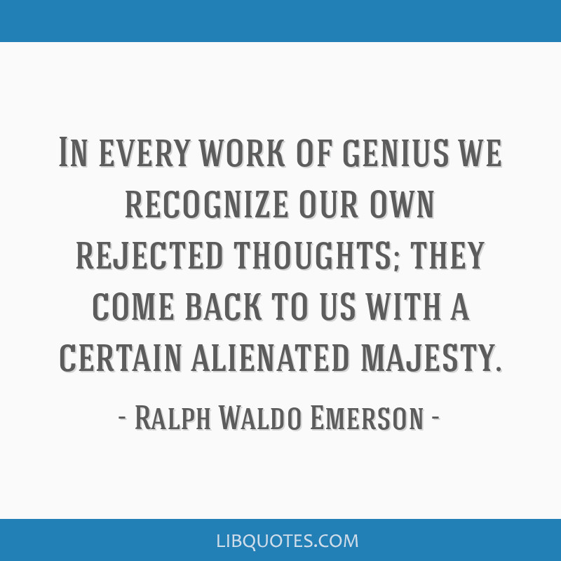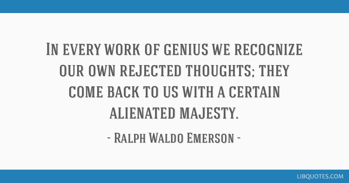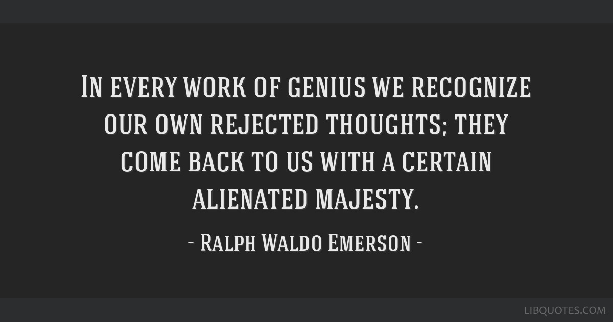 In every work of genius we recognize our own rejected thoughts; they come back to us with a certain alienated majesty.