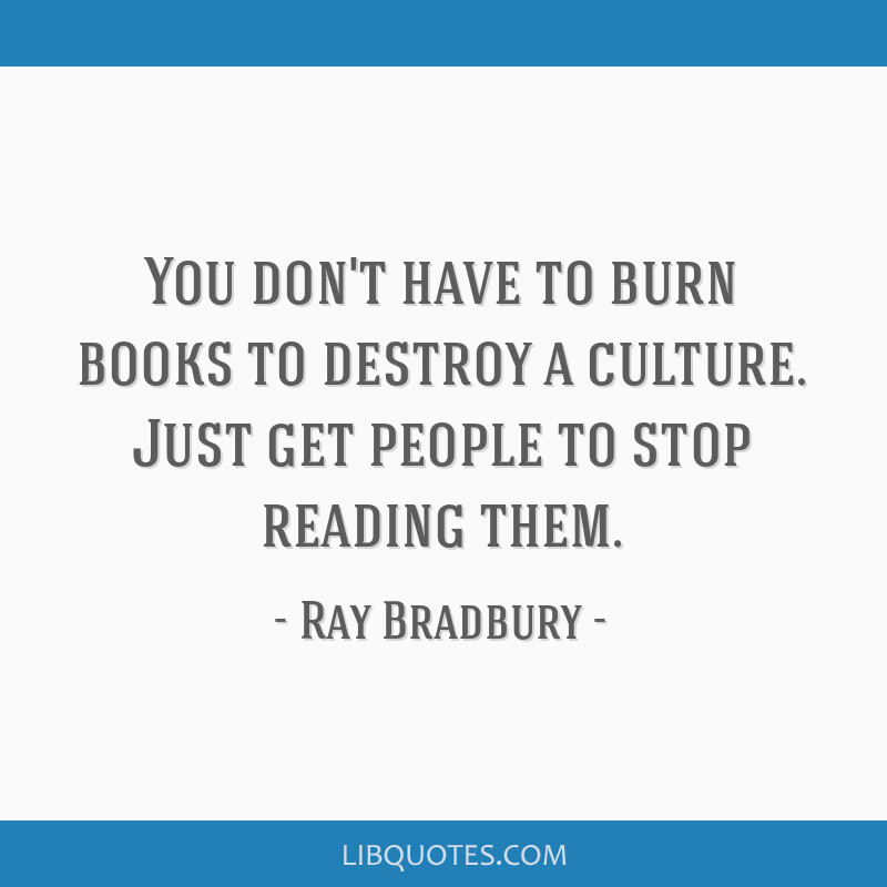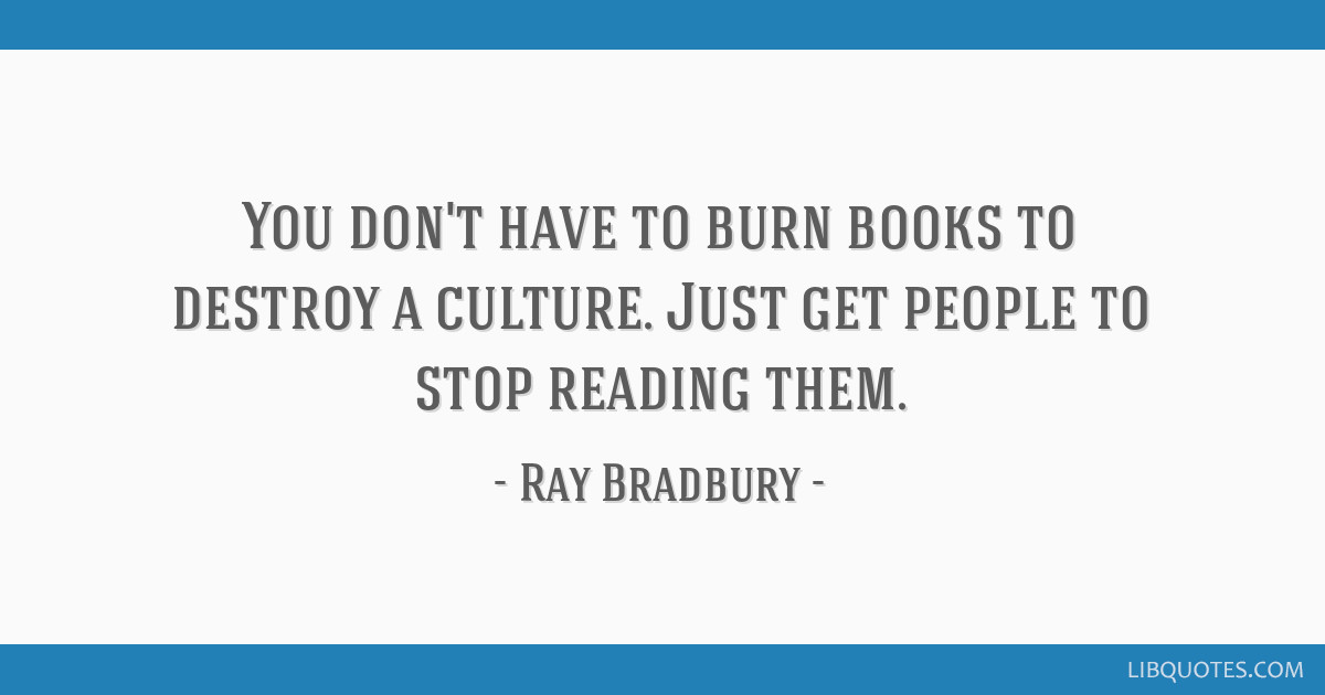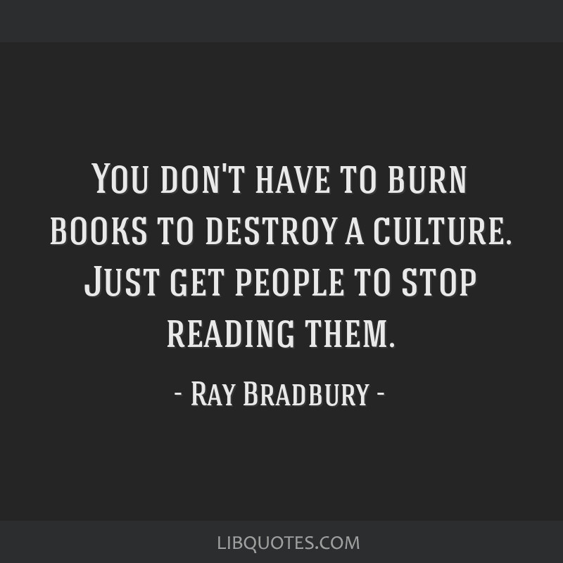 You don't have to burn books to destroy a culture. Just get people to stop reading them.