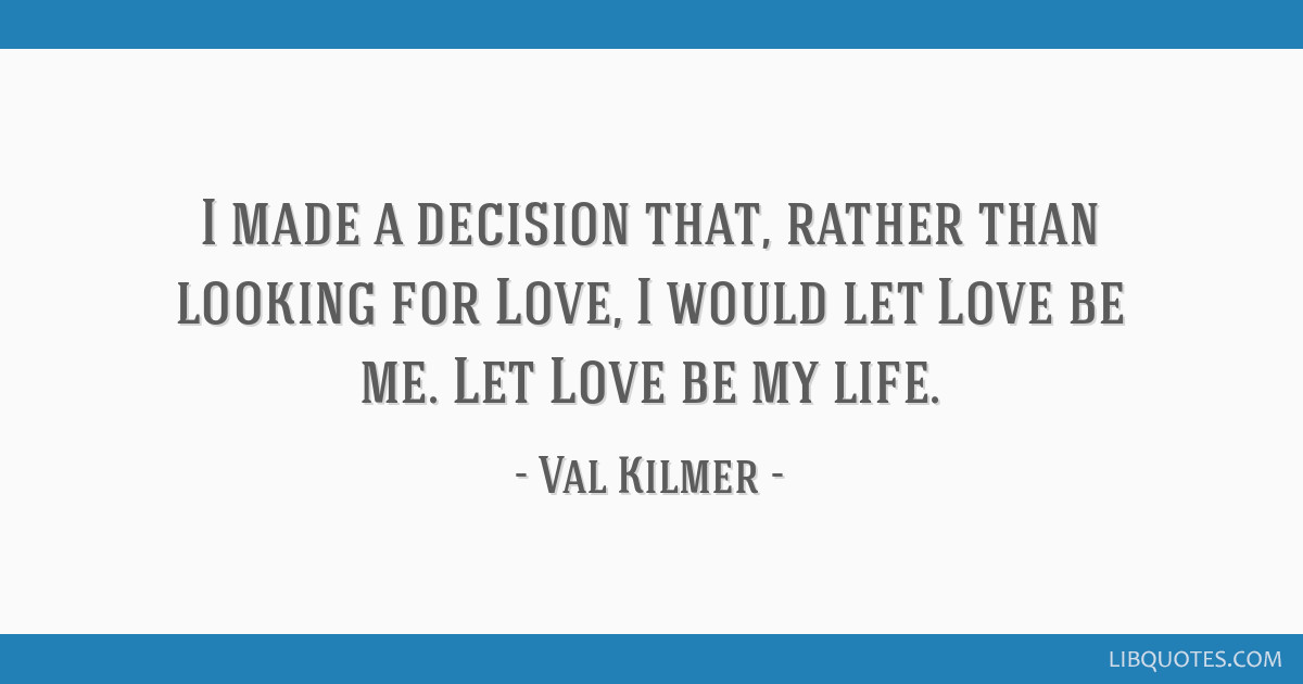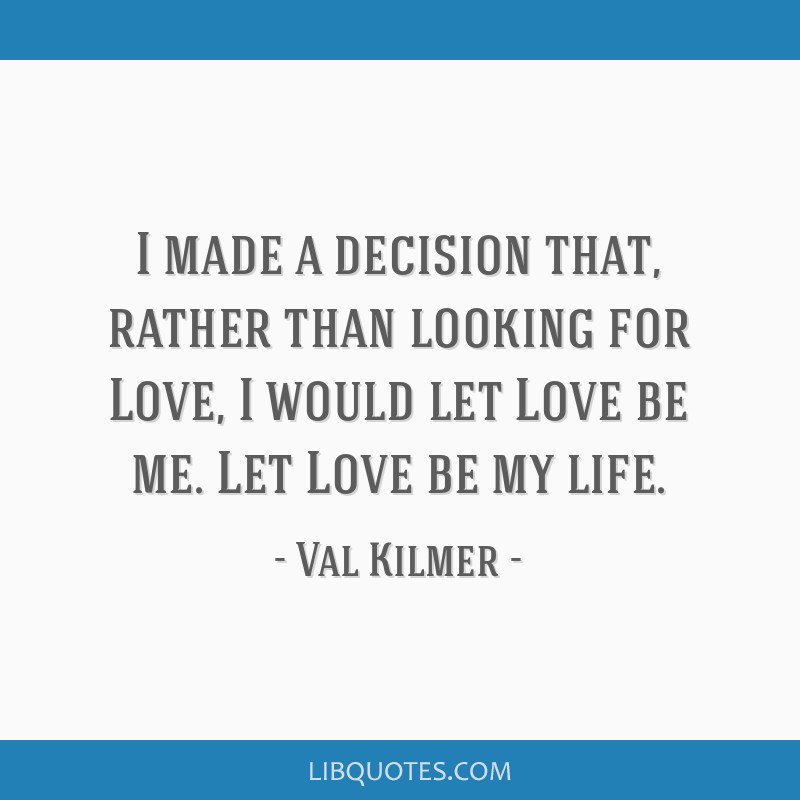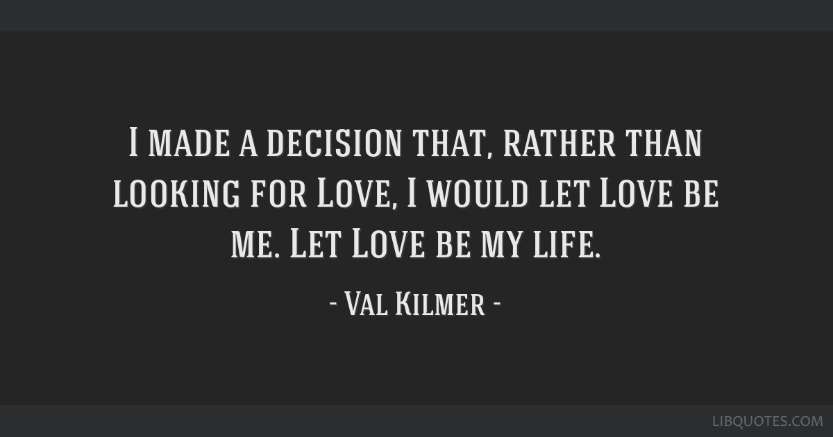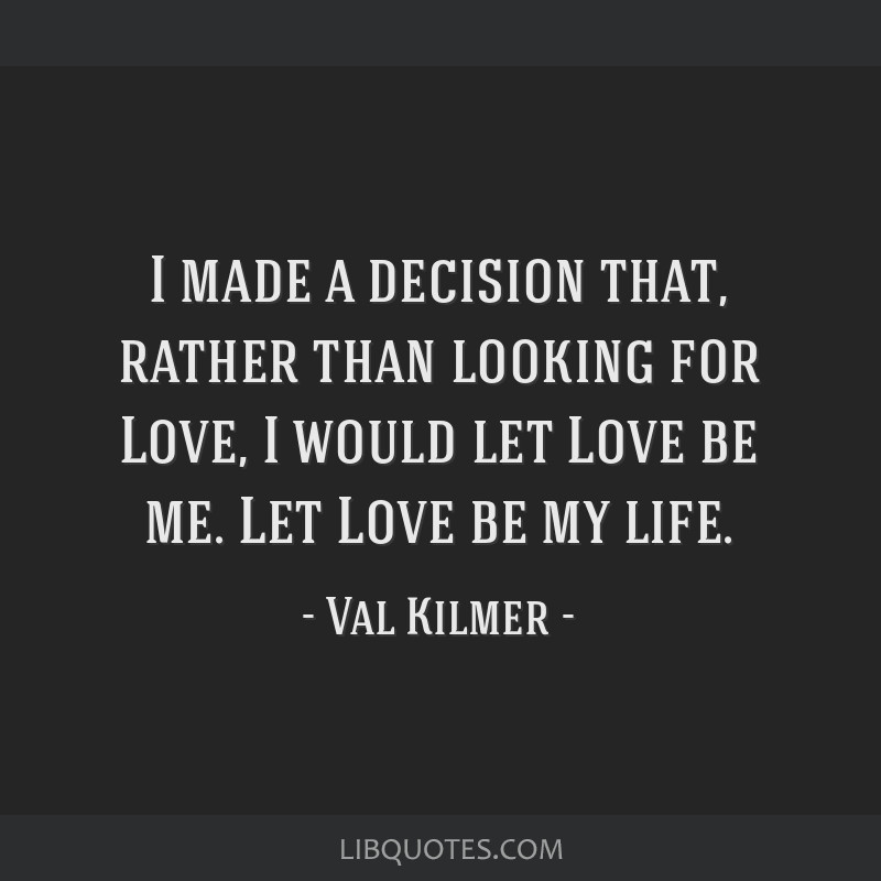 I made a decision that, rather than looking for Love, I would let Love be me. Let Love be my life.